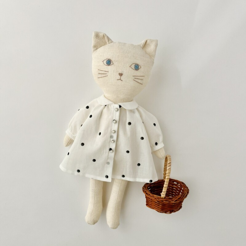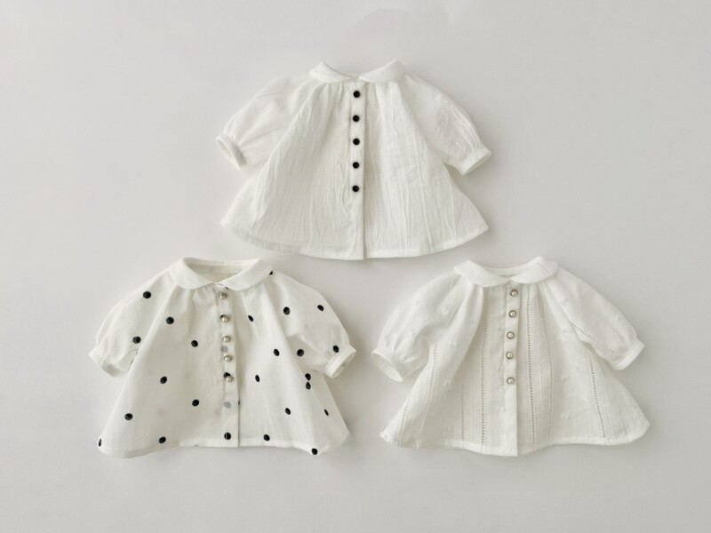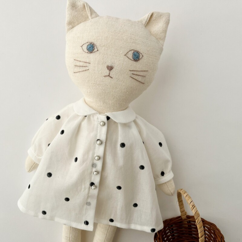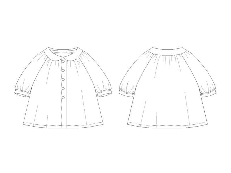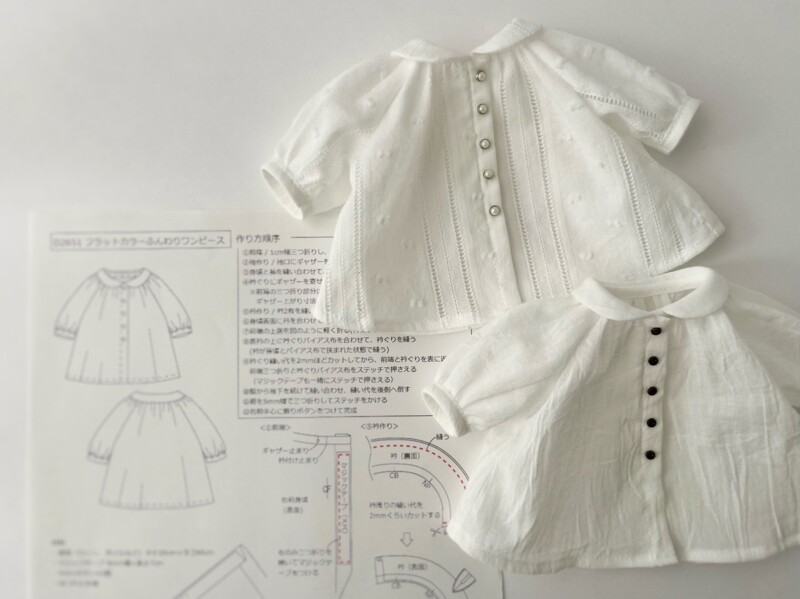 nanoneko dollや26cmお世話人形が着られる「フラットカラーふんわりワンピース」の型紙と作り方です。