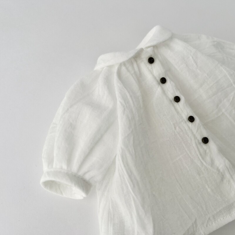 お袖がふんわりとしたフラットカラーのワンピースです。